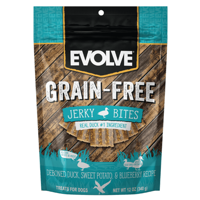 Los bocaditos de cecina Evolve Grain Free Deboned Duck, Sweet Potato, & Blueberry Recipe Jerky Bites son premios saludables y holísticos diseñados para perros con sensibilidades alimentarias, lo que a su vez ayuda a promover un sistema inmunológico saludable. Los premios son suaves y húmedos, lo que tentará a tu mejor amigo a querer más continuamente. La fórmula avanzada sin cereales combinada con los ingredientes de pato deshuesado, batata y arándano no solo tiene un gran sabor para tu mejor amigo, sino que también es un bocadillo nutritivo para ayudar a mantener a tu perro feliz y saludable. ¡Elegir los bocaditos de cecina Evolve Grain Free Deboned Duck, Sweet Potato, & Blueberry Recipe Jerky Bites es la clave para un futuro saludable y holístico para tu mejor amigo!